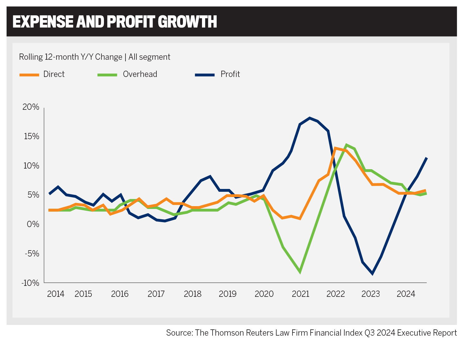 There was increased profitability in the sector as the Q3 2024 Thomson Reuters Law Firm Financial Index (LFFI), illustrates a strong outlook for law firms with overall demand growing by 3.6 percent compared to Q3 2023.